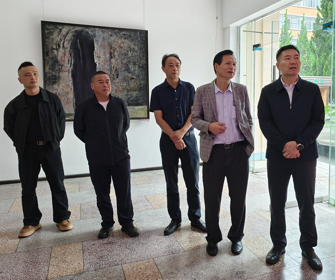 安顺学院党委书记程绪权,安顺学院纪委书记肖禹春,安顺市文联党组书记、主席王瑜,市文联党组成员、副主席杜云,市文联党组成员、秘书长庭华,市政协宣教文卫体委主任罗玉康,市文联组联部主任石勇一行共同莅临展馆观展指导。在安顺学院艺术学院院长罗文帝、副院长谢朝玺和梁勇的全程陪同下,领导嘉宾们细致观摩了展览,听取了关于本次展览从策划、组织到作品遴选与创作理念的全面汇报,并就相关内容与现场人员进行了交流。