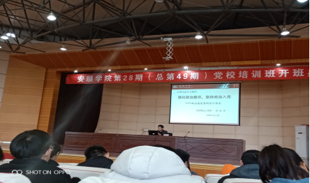 11月28日下午两点整,安顺学院第28期党校十九大专题学习在学术报告厅开展,主讲人黎进深。艺术学院20名发展对象,2名积极分子,共22名学员参加此次交流学习。