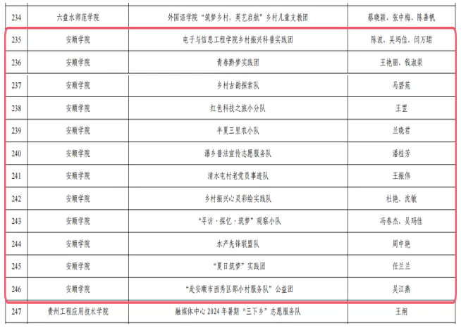喜报‖安顺学院在2024年贵州省大学生暑期“三下乡”社会实践活动评选中获得28项荣誉
